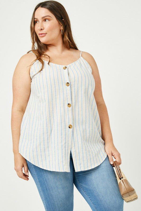 Striped V-Neck Buttoned Cami