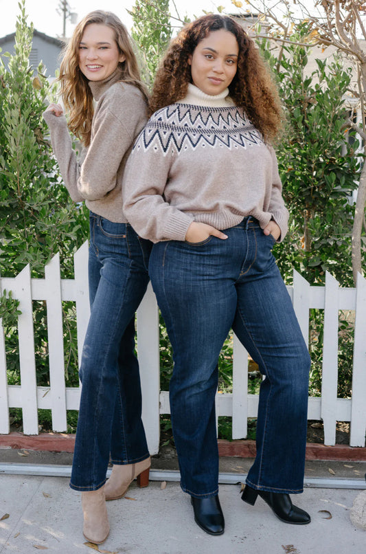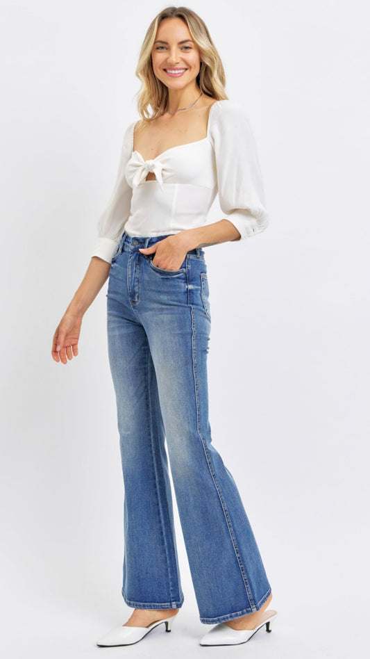 High Waist | Flare | Tummy Control Contrast Wash Jeans