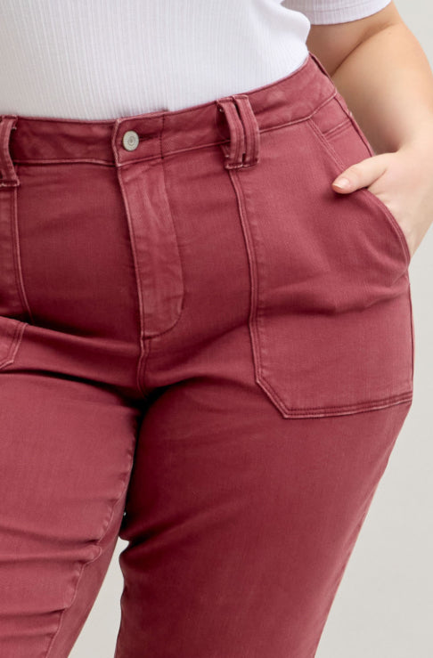 High Waist | Aurora Weekender | Burgundy Cuffed Jeans