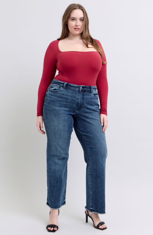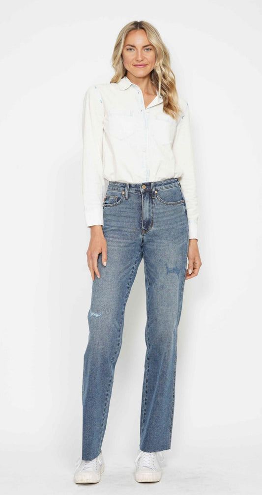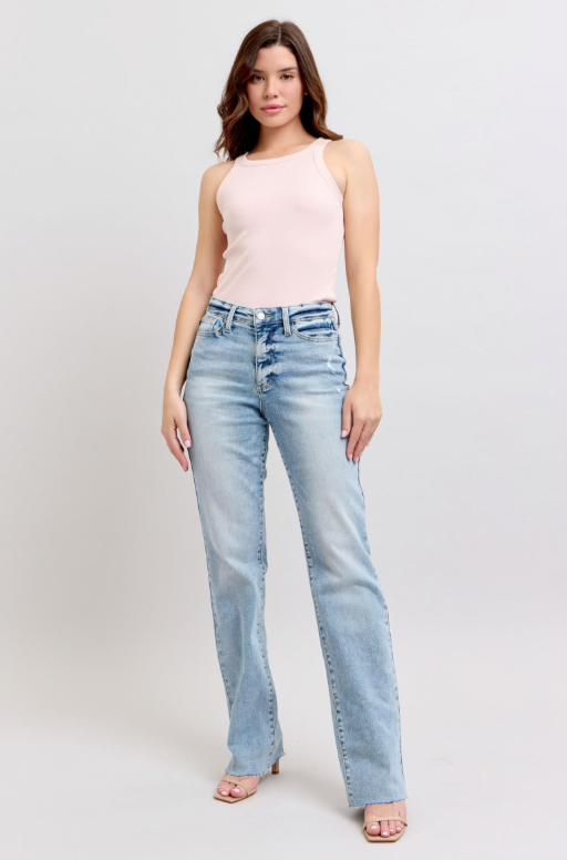 High Waist | Straight | Tummy Control Raw Hem Jeans