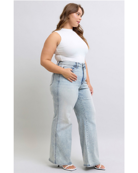 High Waist | Retro Wide Leg | Light Wash Jeans