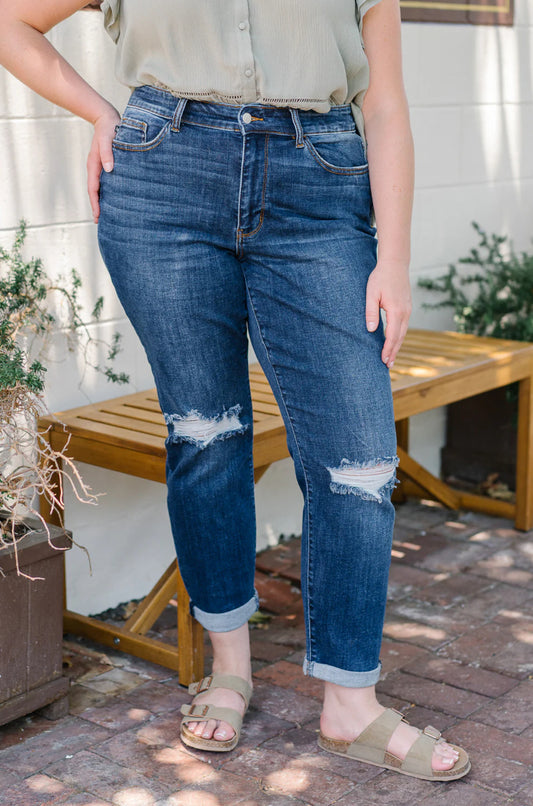 Mid Rise | Boyfriend | Plaid Print Cuff Jeans