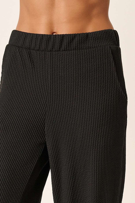 Rib Knit Texture Wide Leg Pants