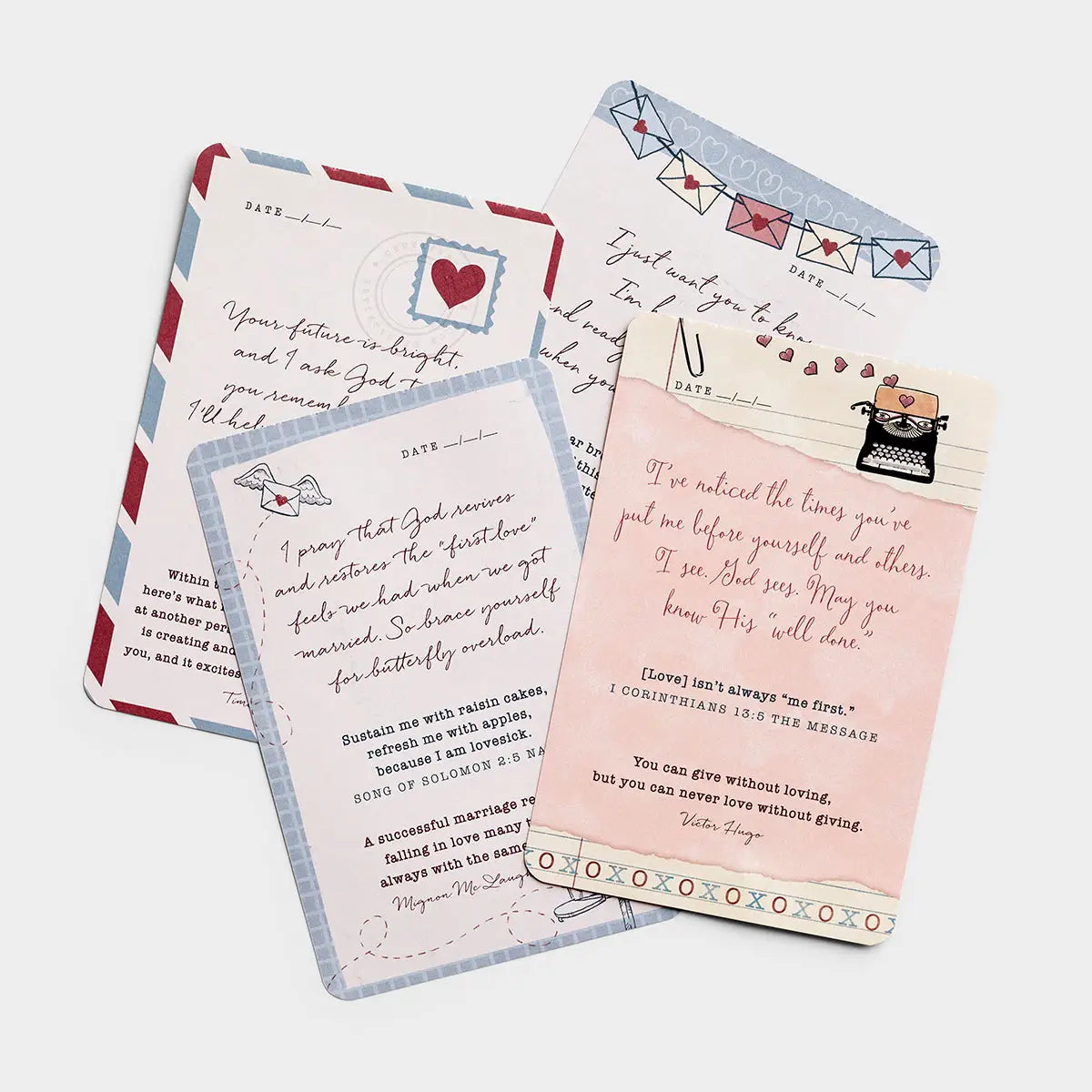 We all want a healthy marriage; we long to feel loved, appreciated, and supported by our spouses. But unfortunately, life gets busy and we forget to foster this most important relationship. With Prayers to Share: 100 Notes of Love to Affirm Your Marriage, you can let your spouse know that you're praying for them, that you're in their corner, and that you truly care about how their day went. Each loving note includes a prayer, along with a corresponding Scripture and inspirational quote. With space on the back to write a personal note, you can leave these on the windshield, the bathroom mirror, in a briefcase or in a bag of their favorite candy.