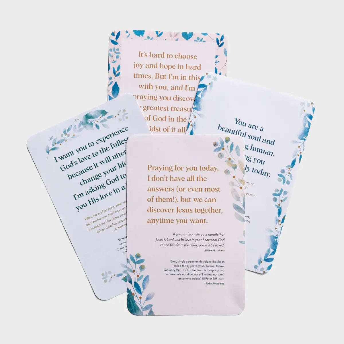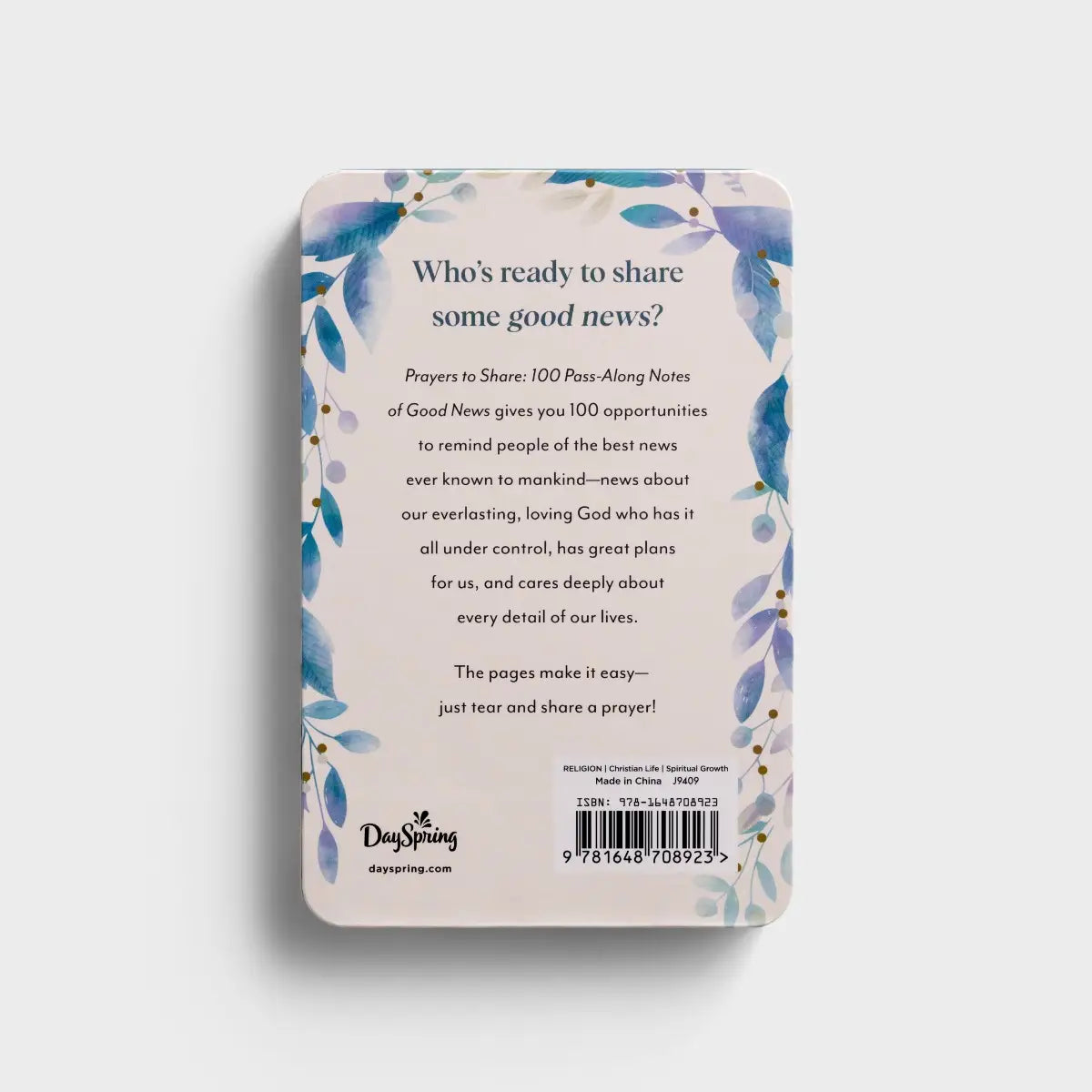 Prayers to Share: 100 Pass-Along Notes of Good News gives you 100 opportunities to remind the people in your life of the best news ever known to mankind—news about our everlasting, loving God who has it all under control, has great plans for us, and cares deeply about every detail of our lives. Each uplifting prayer note includes a short, meaningful prayer, select Scriptures and encouraging quotes. An excellent way to inspire the world around you. The pages make it easy—just tear and share a prayer!