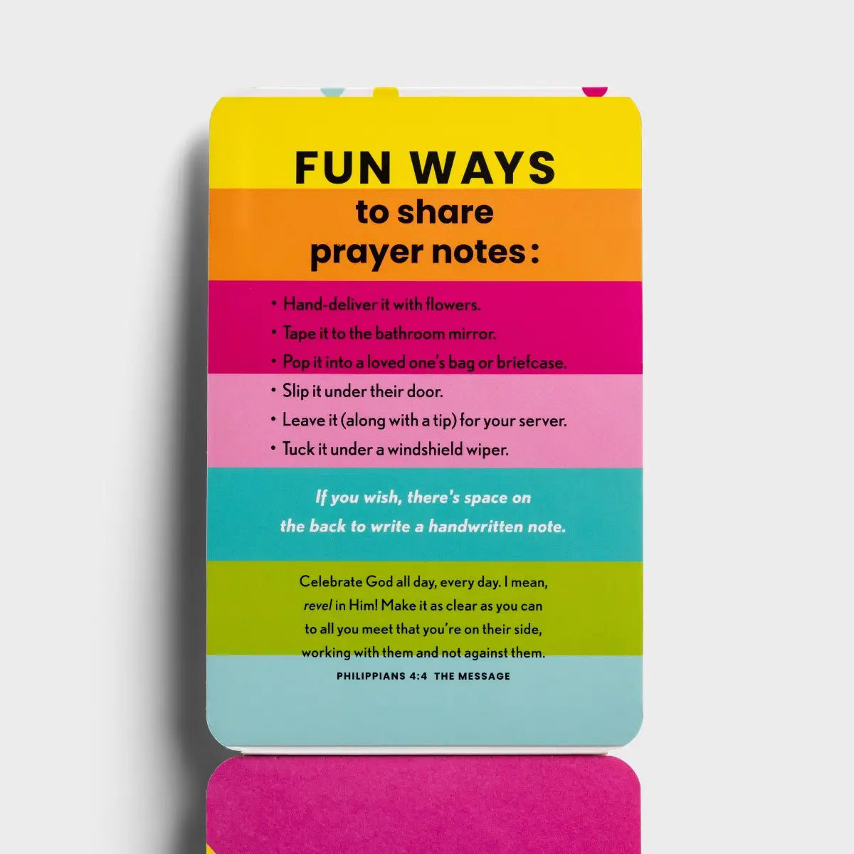 A delightful addition to DaySpring’s popular Prayers to Share Series, these notes make it effortless to spread contagious happiness to the world around you. It is the perfect way to share the joy that is ours in Jesus!