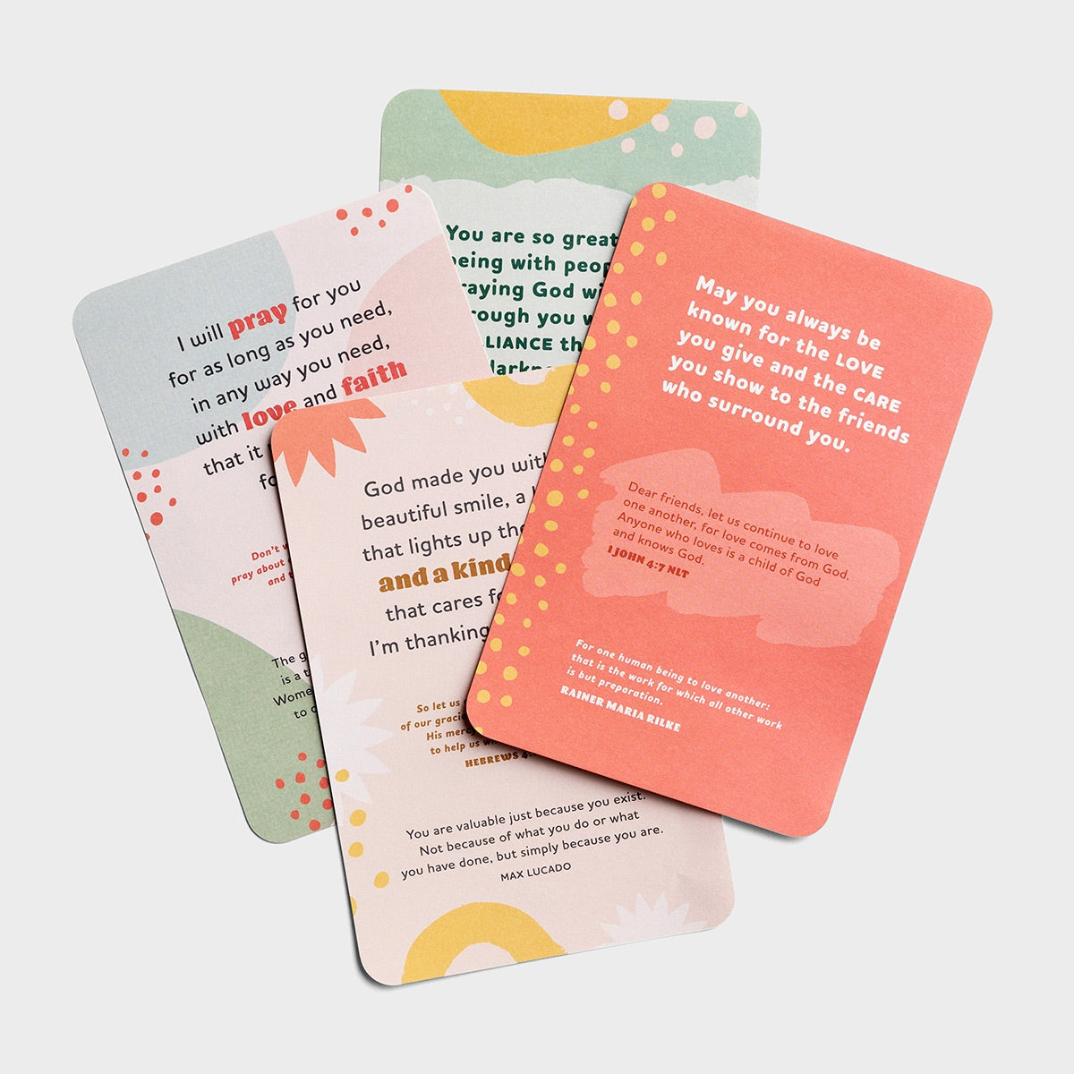 These 100 pass-along notes give you the opportunity let your friends know that you are truly in their corner, cheering them on, and lifting them up to an almighty God who loves and cares for them (even more than you do). Filled with heartfelt prayers, meaningful Scriptures, inspiring quotes, and colorful artwork - these cards are a wonderful way to brighten someone's day and remind the people you love that they matter. Wherever you are, just tear and share a prayer!