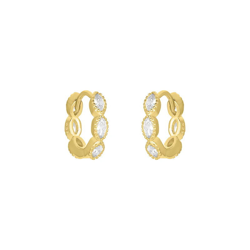18k gold plated 925 sterling silver, cubic zirconia. Hypoallergenic.