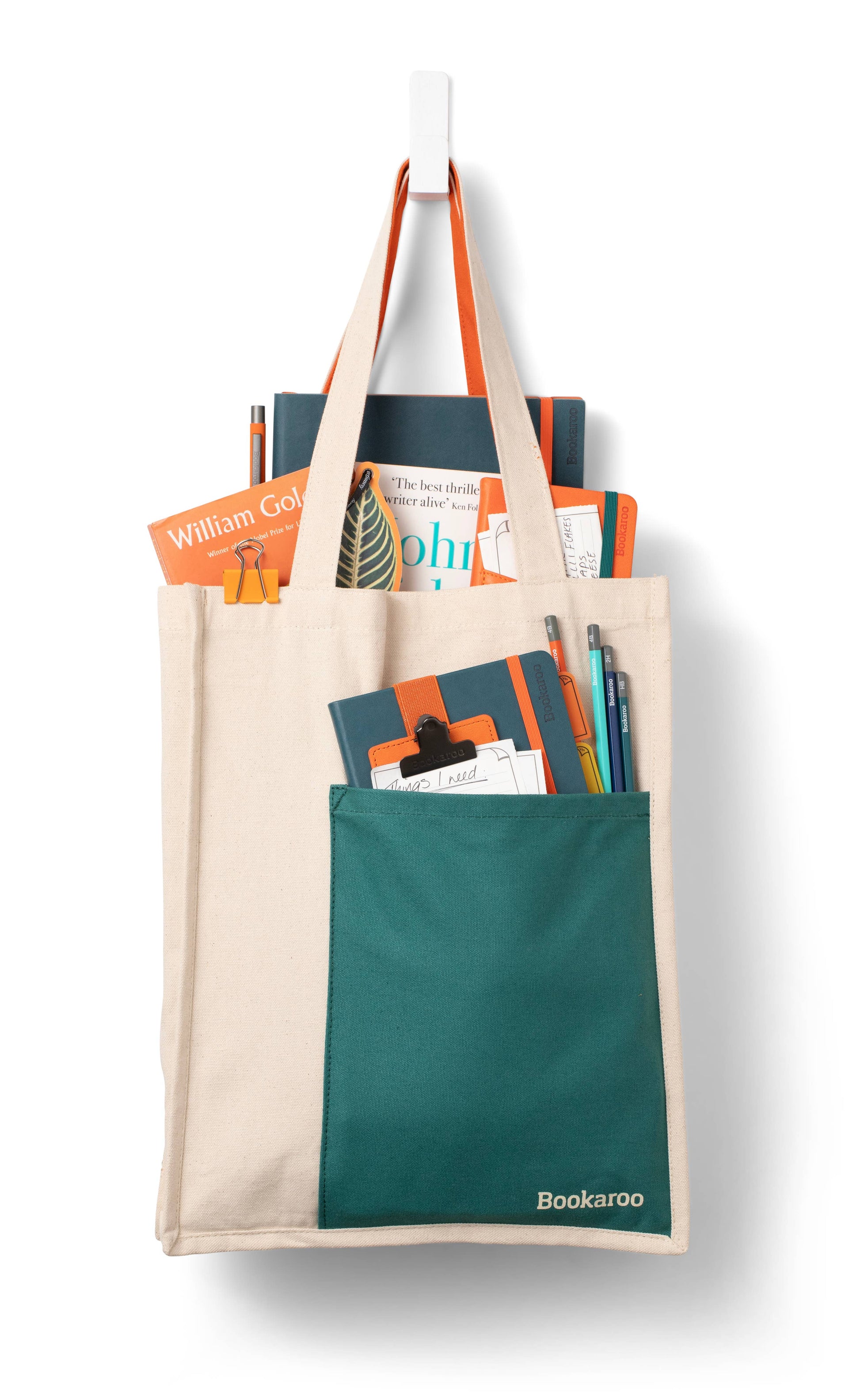 If a Tote is your bag, then this is the one you need. Made from strong natural 100% cotton with strong double thickness handles and a decent 8cm gusset, it will happily carry all your daily stuff to and from wherever you want! And there's a perfectly shaped pocket on the front to snugly hold your Journal - or anything else booky shaped for that matter! In all the Bookaroo color combos obviously. Complete the Bookaroo Lookaroo!