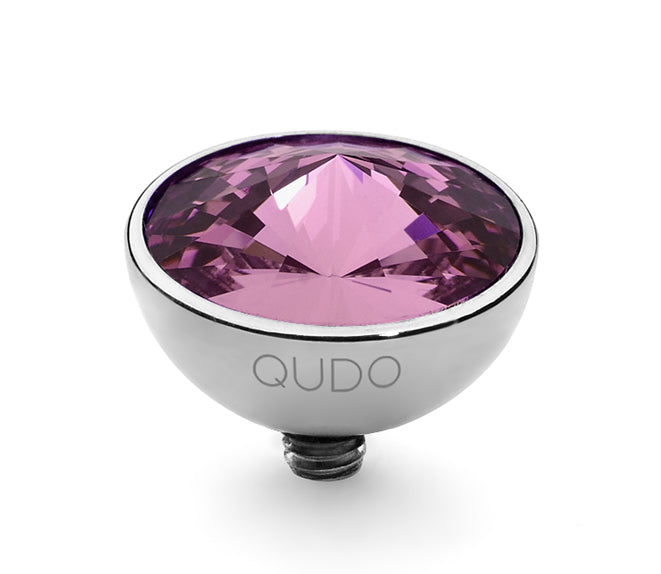 The Bottone style of Qudo top is available in multiple diameters: 5mm, 8mm, 10mm, 11.5mm, & 13mm. Bottone sits a little taller than tops such as Canino, Tondo, Sesto, and Molfetta. With it's narrow boarder and Qudo branding, this is a very modern design. All Qudo tops are Stainless Steel with Swarovski Crystals.