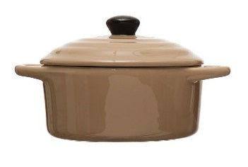5" Round x 3"H 1 Cup Stoneware Mini Baker w/ Lid.