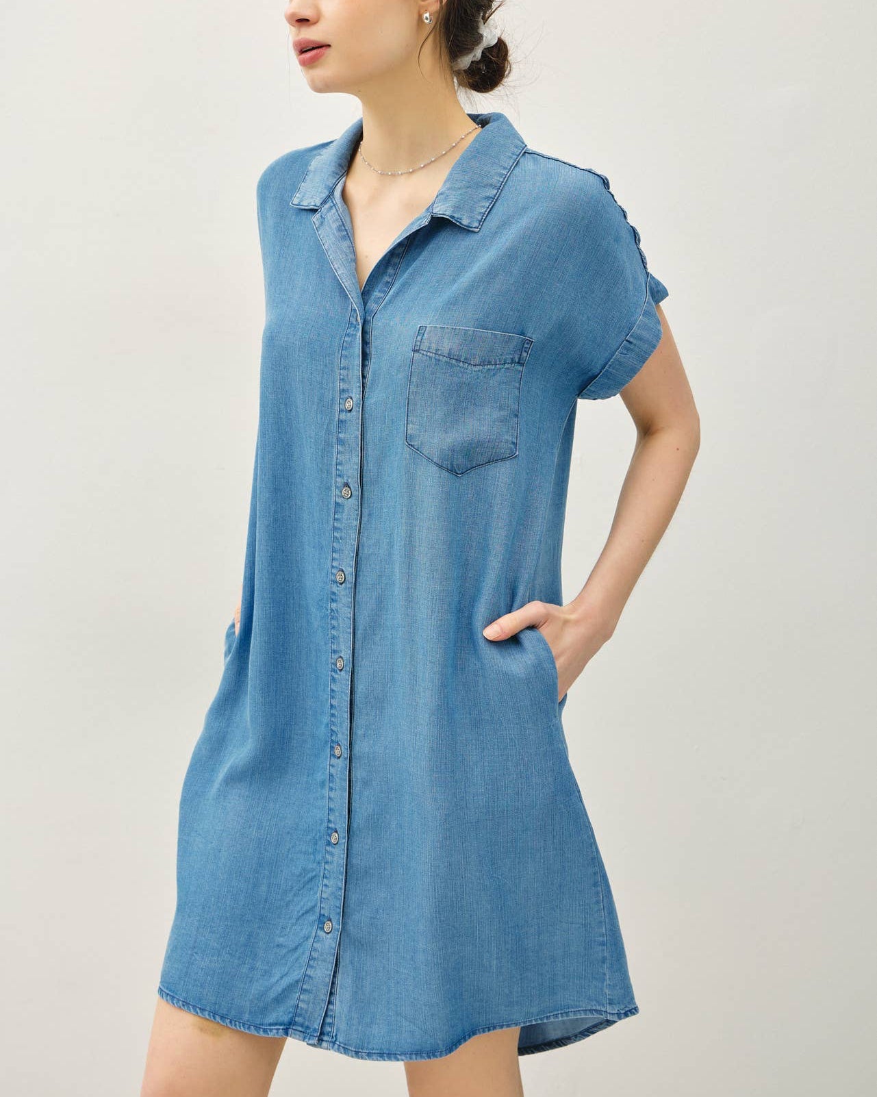 Tencel * Shirt Dress * Front Button Closure * Turn Down Collar * Classic Fit * Pocket on the Chest * Rolled Cuffs on the Sleeves * Back Yoke with Box Pleat