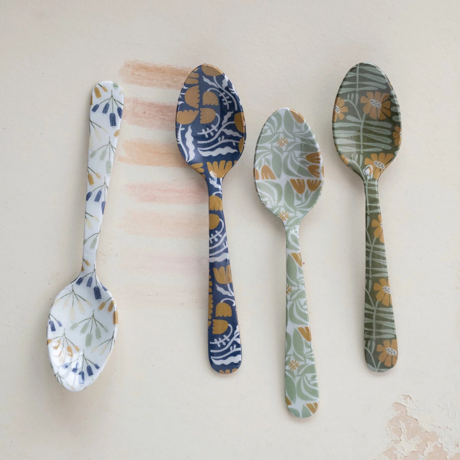 5-1/4"L Enameled Stainless Steel Spoon w/ Flowers, 4 Styles