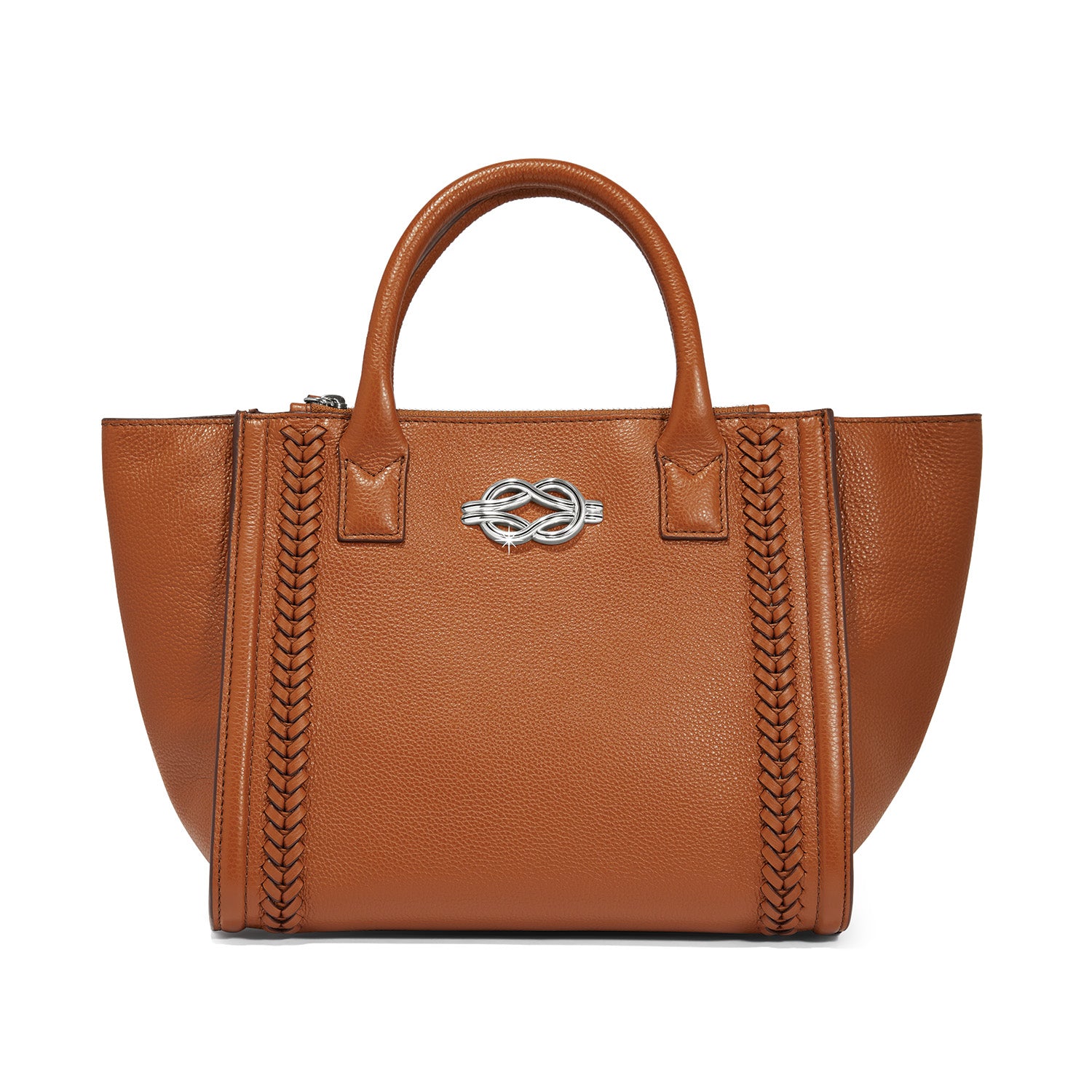 A modern mid-size tote with a beautiful bumped border features a refined textural herringbone laced design and bold Harmony knot hardware gives it that extra special detail. It’s modern yet classic. It can be handheld or worn with its adjustable crossbody strap.