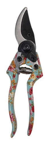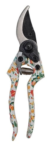 8"L Aluminum & Stainless Steel Garden Pruning Shears w/ Floral Patterned Handle & Blade Protector, Multi Color, 2 Styles