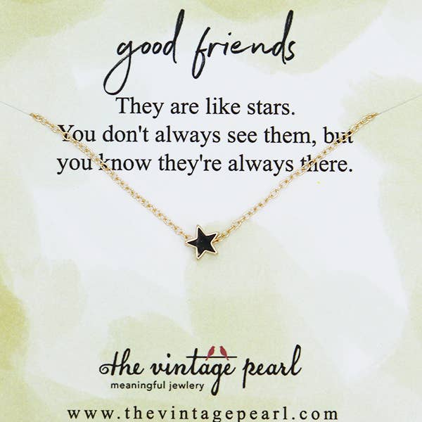 A very dainty puffy star created in gold-plated brass and hung on an 18″ gold-filled dainty chain. Yellow Watercolor Card Reads: “good friends They are like stars. You don’t always see them, but you know they’re always there.”