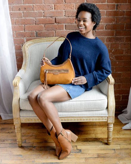 Fashioned in cozy corduroy in colors inspired by the beautiful falling leaves of autumn, Hallie will have you dreaming of fall. This petite style is closed with a zipper and comes with two interchangeable shoulder straps for versatility. Looks adorable with jeans & your favorite sweater, so bring on the cooler weather, you will be ready for all the fall fun with the Hallie Hobo!