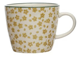 3-3-4" Round x 3-1/4"H 10 oz. Hand-Stamped Stoneware Mug w/ Pattern