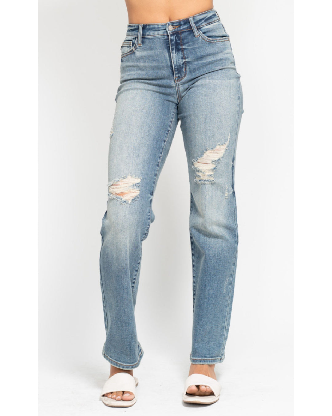 High Waist Dad Straight with Harsh Tint & Destroy Detail