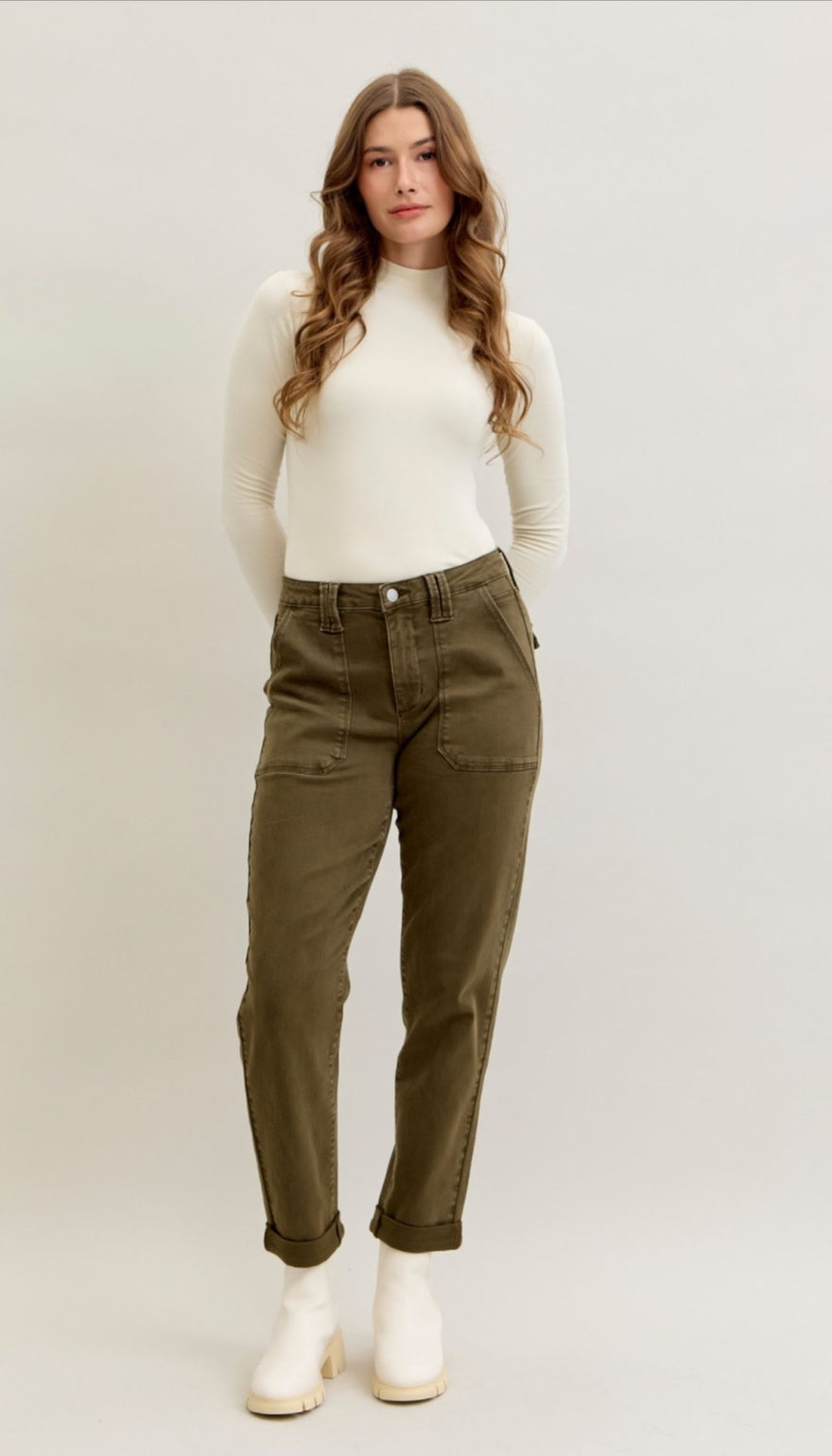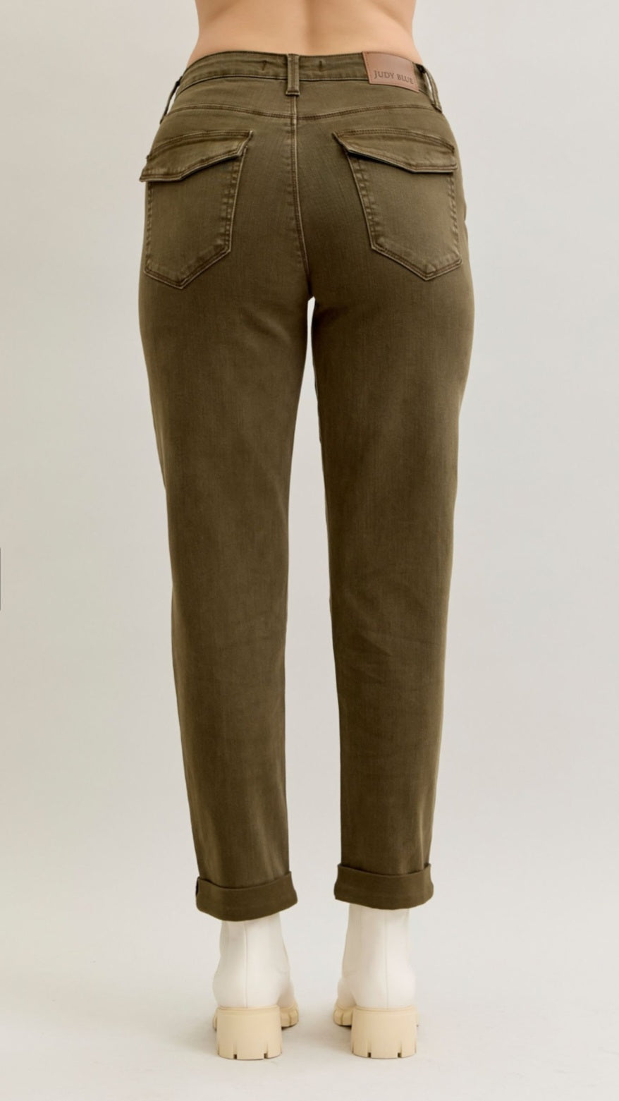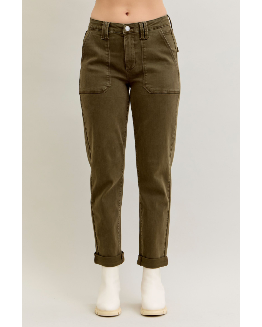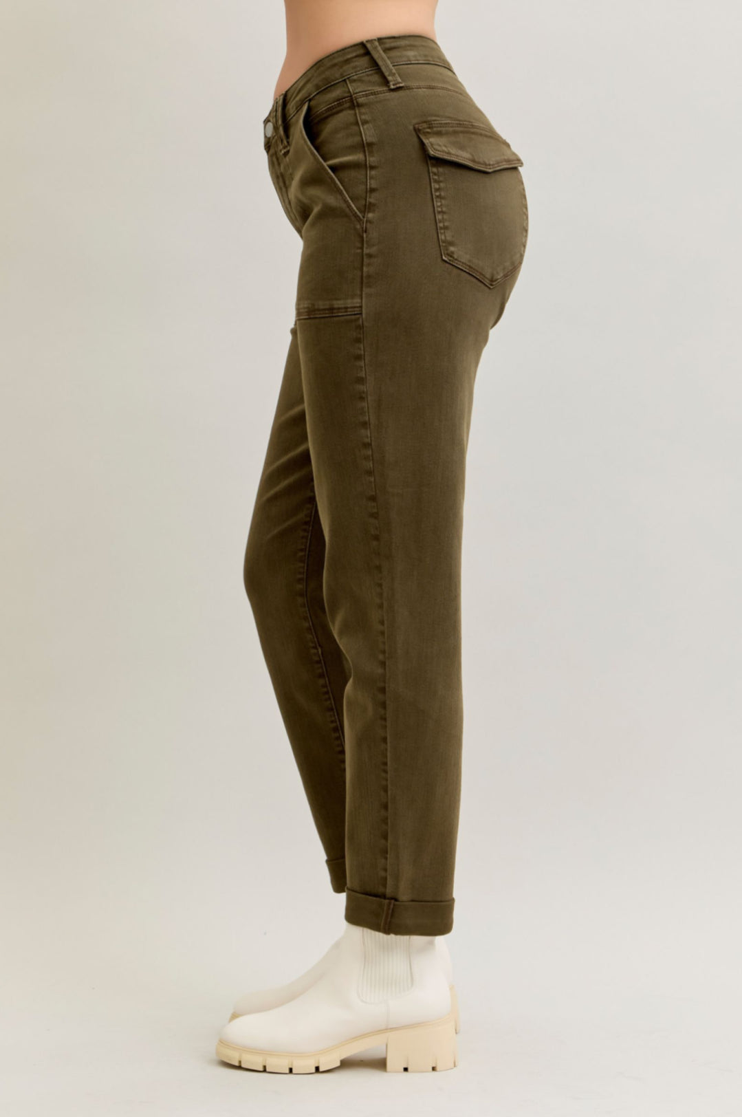 High Waist Aurora Weekender Garment Dyed Cuffed - Dark Forest