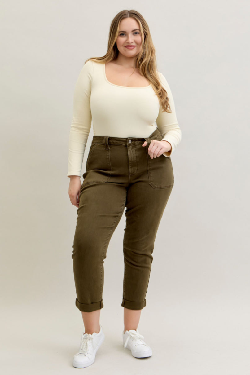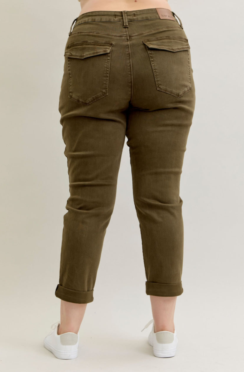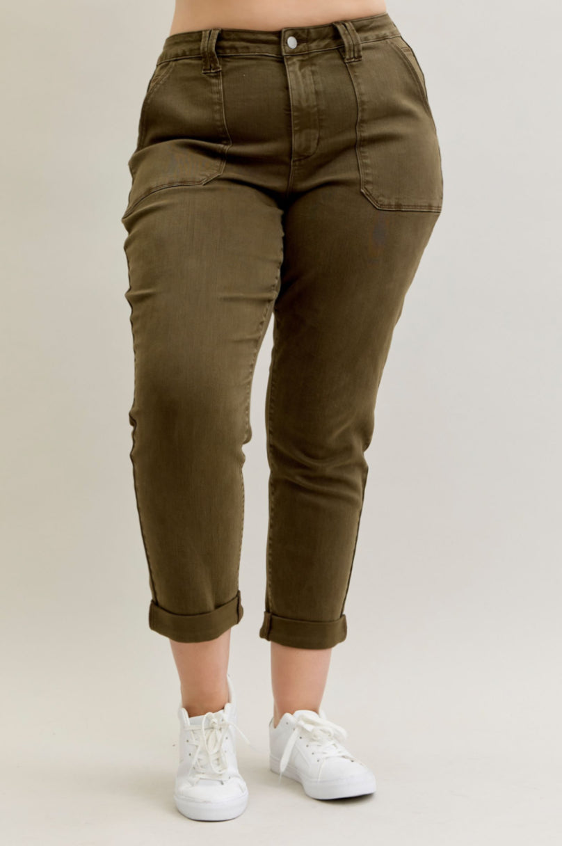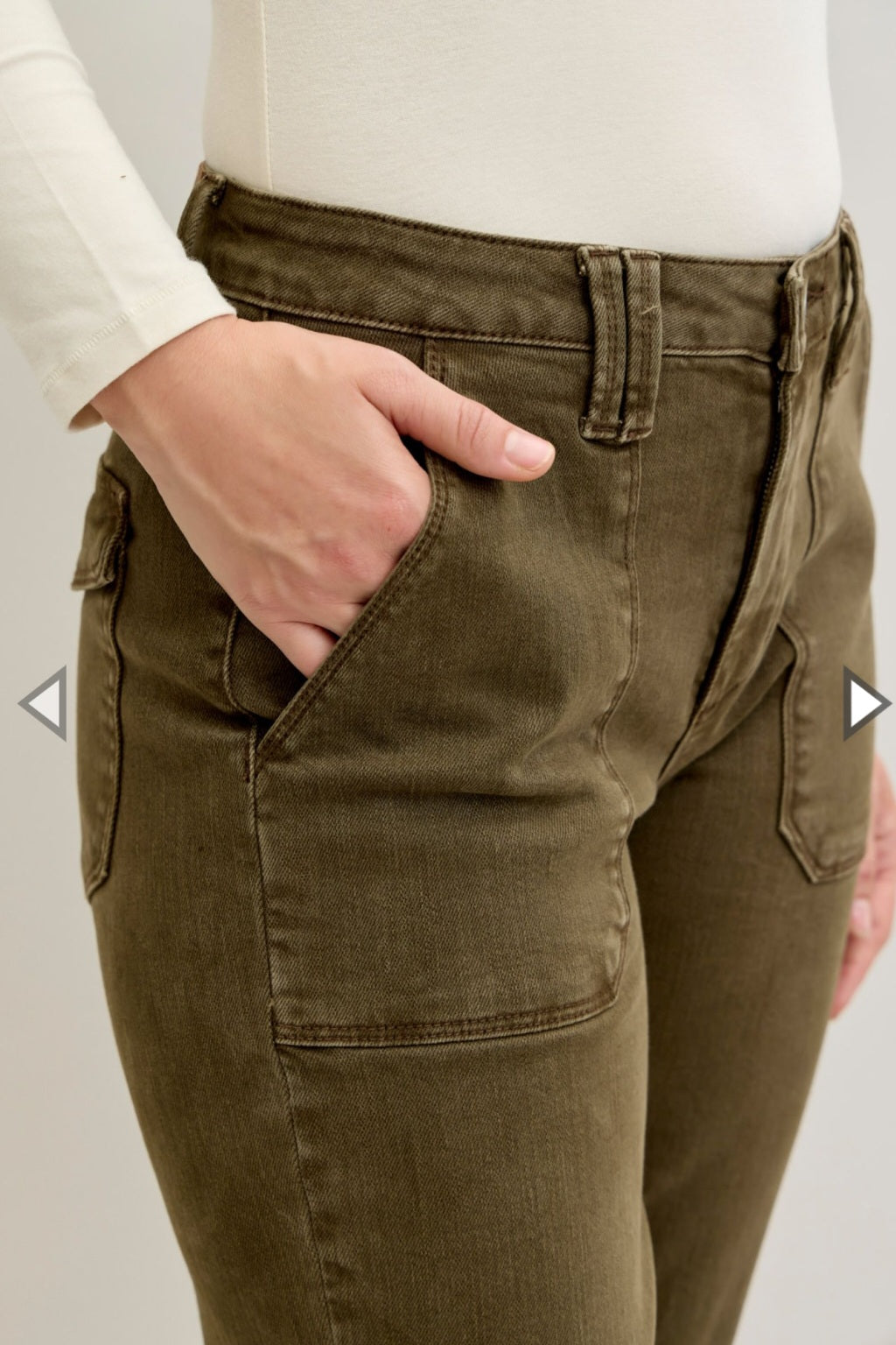 High Waist Aurora Weekender Garment Dyed Cuffed - Dark Forest