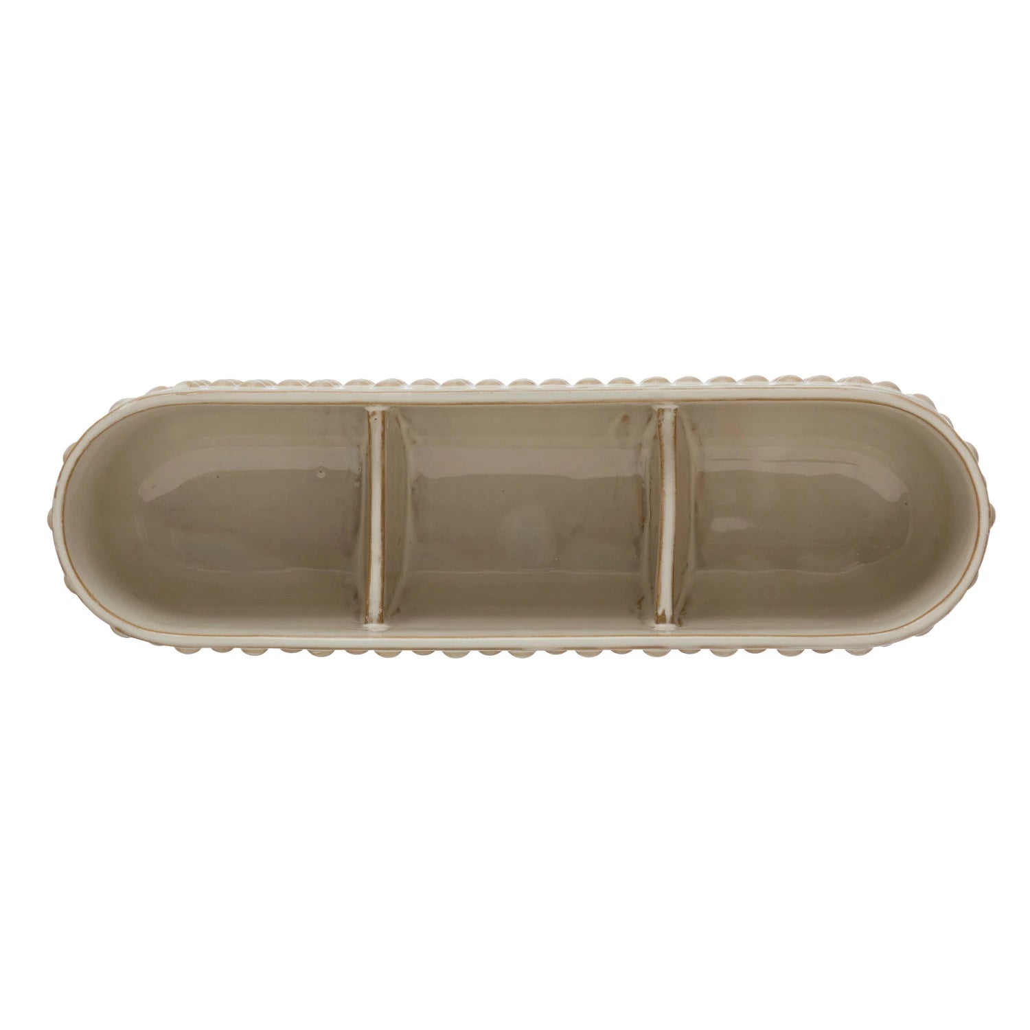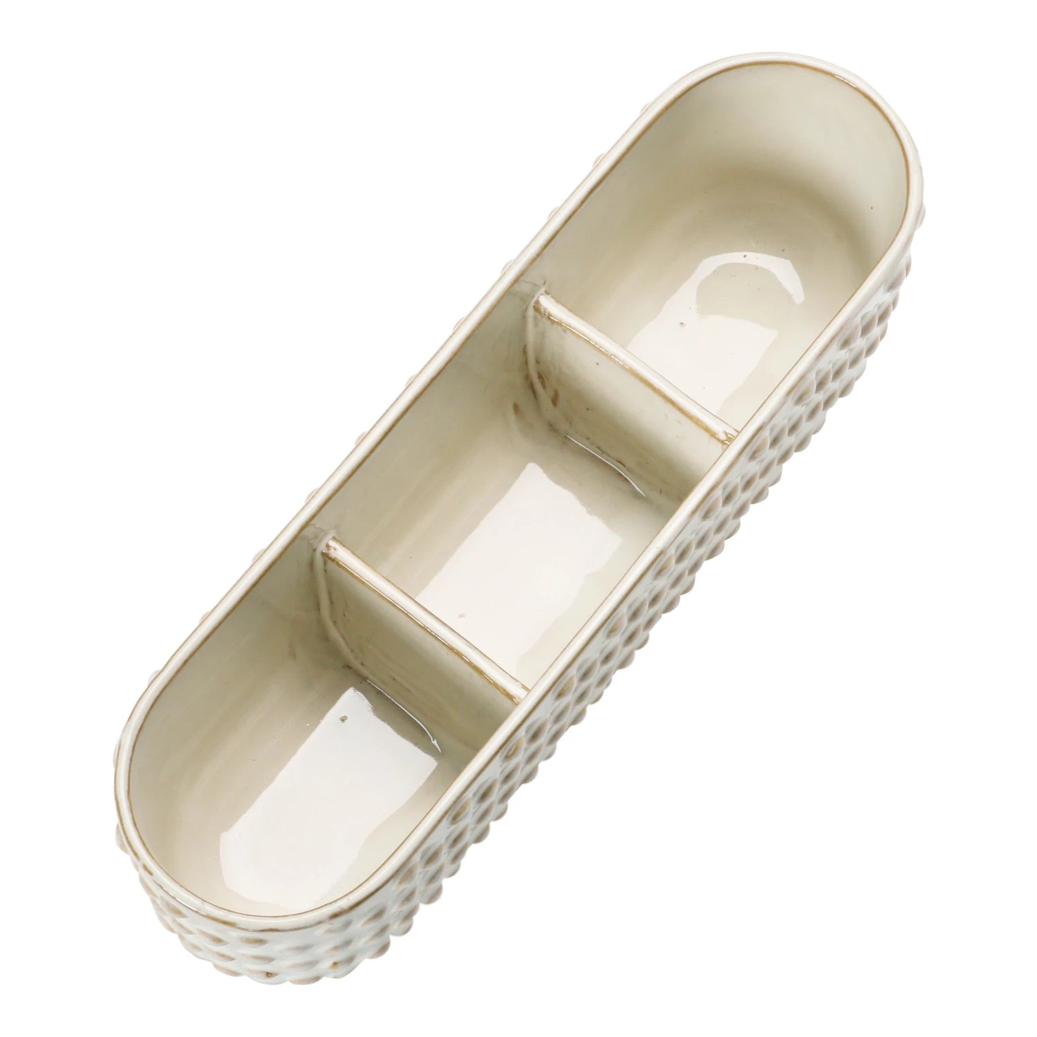 14-1/2"L x 4-1/4"W x 4-1/2"H Stoneware Hobnail Window Planter/Container w/ 3 Sections, Reactive Glaze, White (Each One Will Vary)