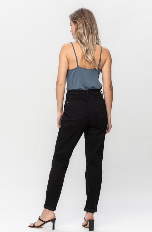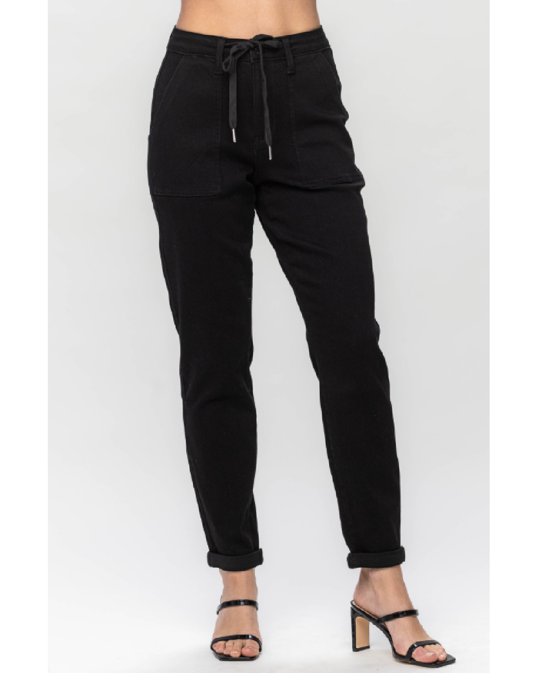 High Waist, Jet Black, Double Roll Cuff , Jogger Jeans