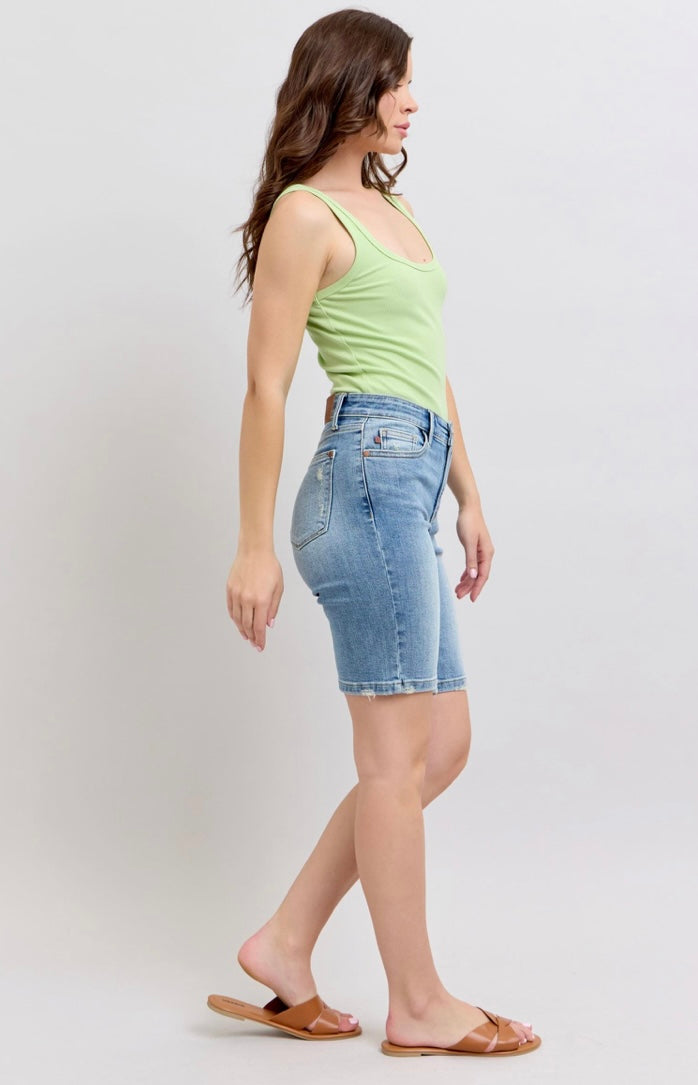 High Waist | Vintage Wash Bermuda Shorts