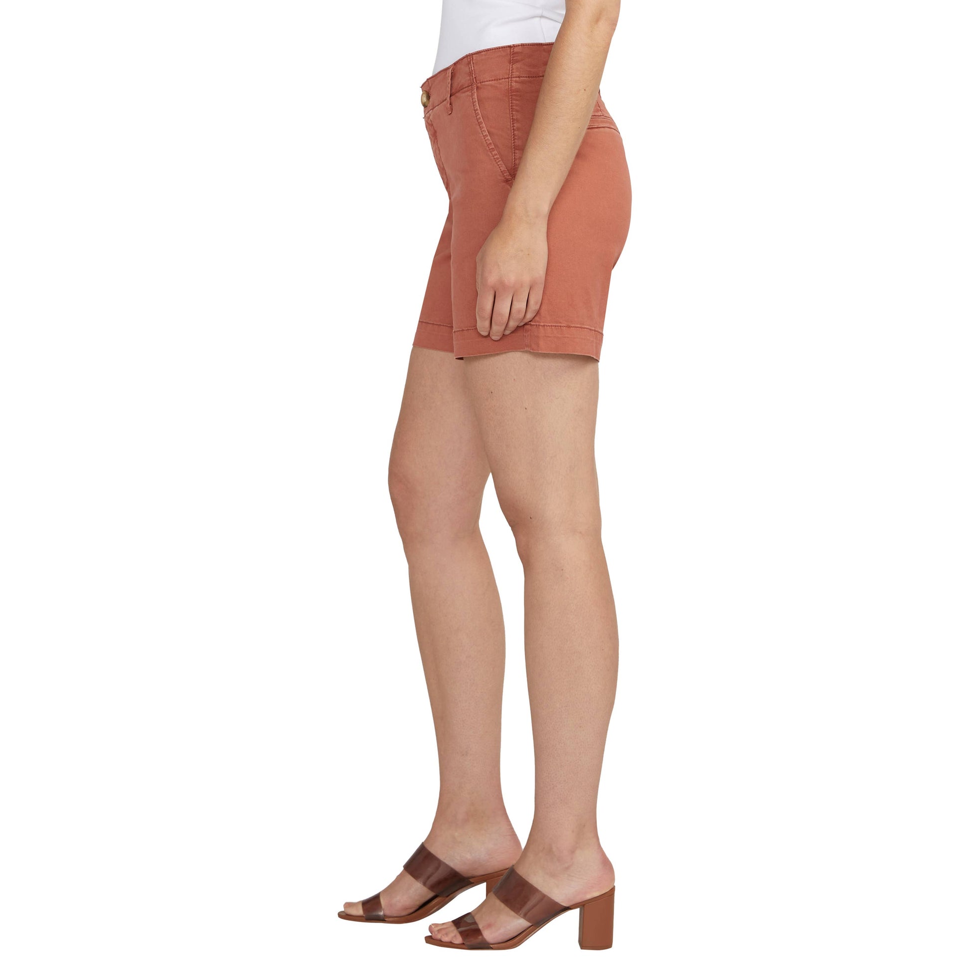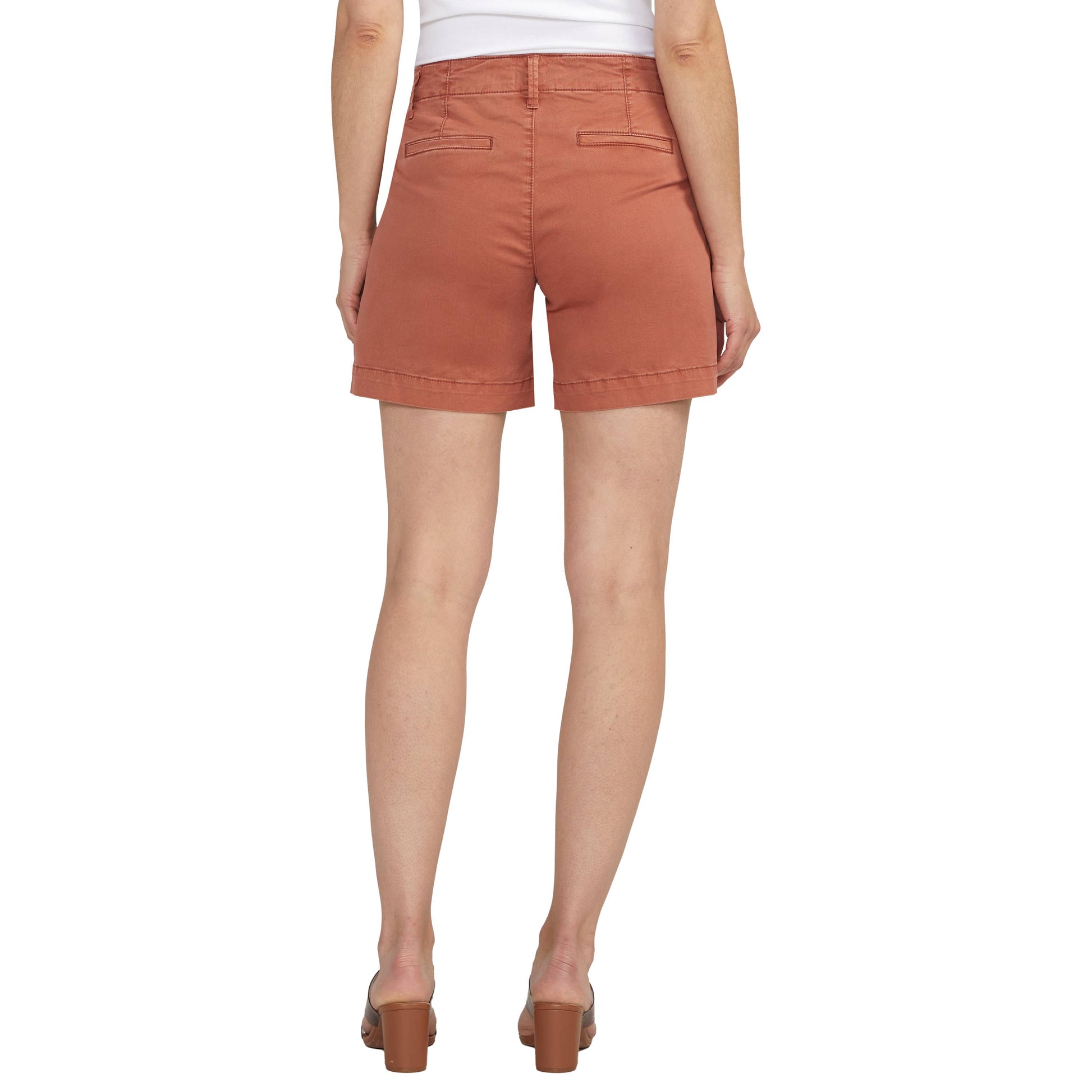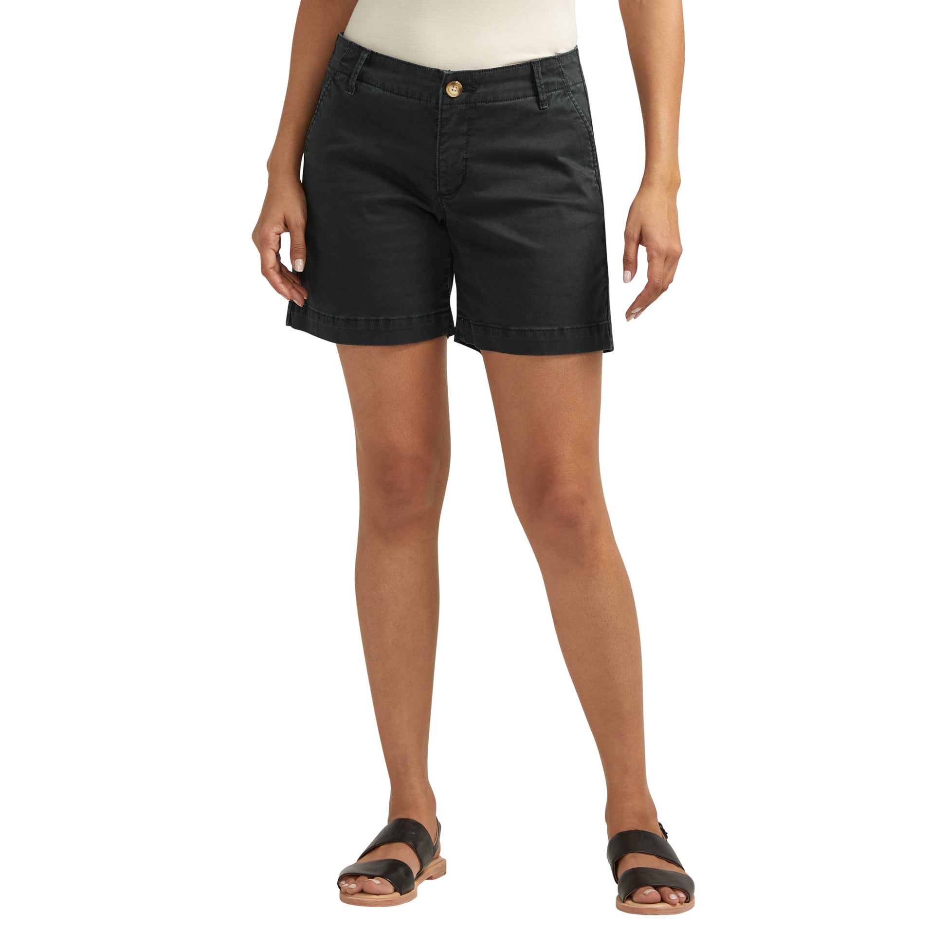 Brighten up your spring wardrobe with a pair of shorts you'll love wearing on repeat. Made with soft & flexible peached cotton stretch twill fabric, these fresh and flattering chino shorts are comfortable and stylish all in one.; Fabric dyed chino shorts with back welt pockets; 9.75" mid rise; Standard waistband with a comfortable, timeless look and feel and no elastic;