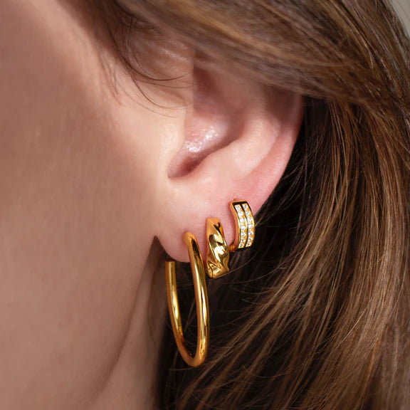 Our sleek and minimalist Jocelyn hoops are just the perfect size. Their lightweight design makes them comfortable for everyday wear. Style them alone or stack them with others for a look we love.