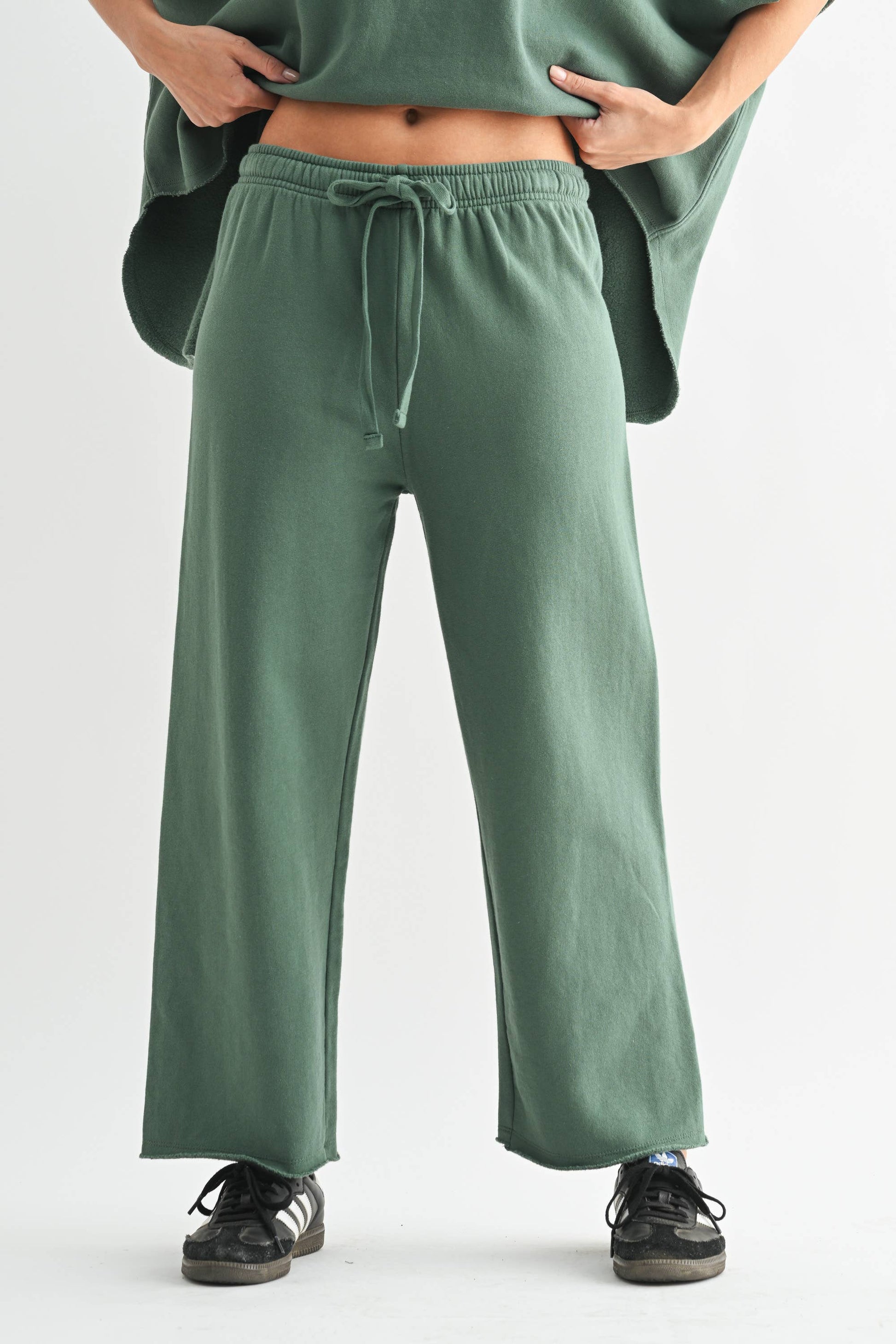 Wide-leg pants made from 100% cotton fleece for a polished yet comfy look. No side seams for a flattering fit. Perfect for the beach or brunch, with a unique softness from garment washing. Stylish and versatile, these don’t feel like typical sweatpants!