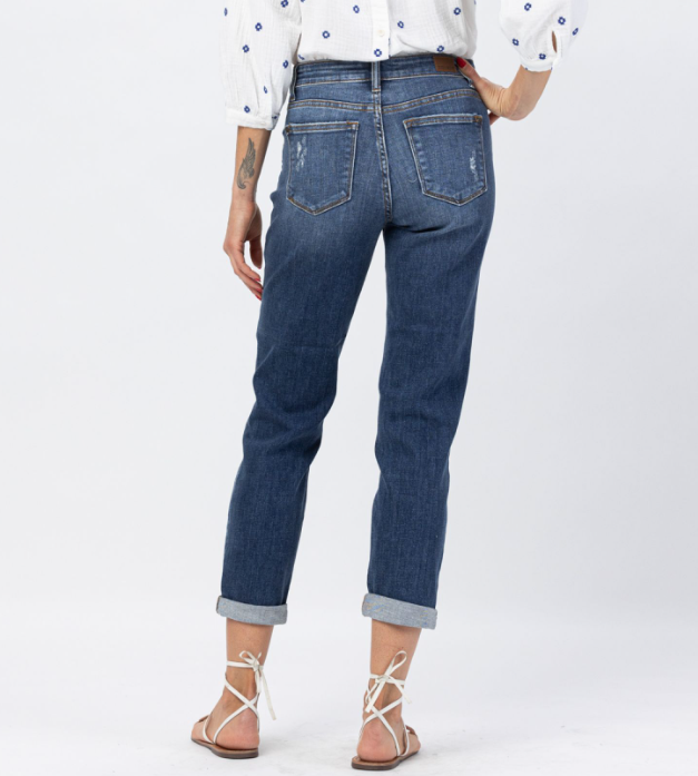 Judy Blue Destroyed Cuffed Slim Fit Jeans