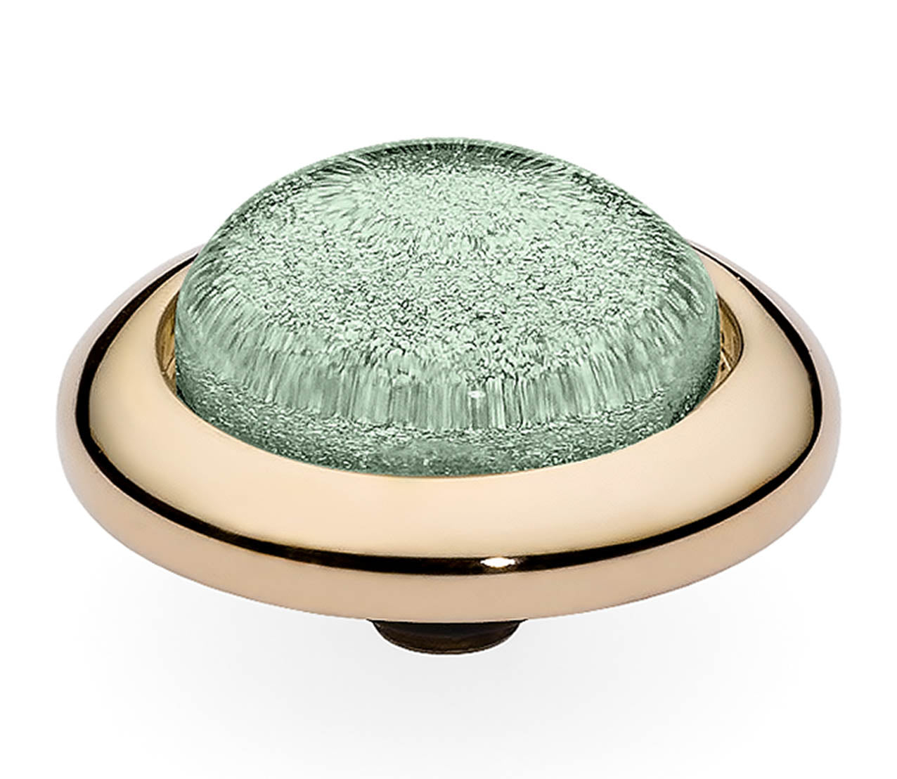 A beautiful low profile top to adorn any of the interchangeable Qudo pieces. This is an excellent choice for Qudo earrings! 11mm swarovski crystal set in stainless steel that is ion plated with 14kt yellow gold.