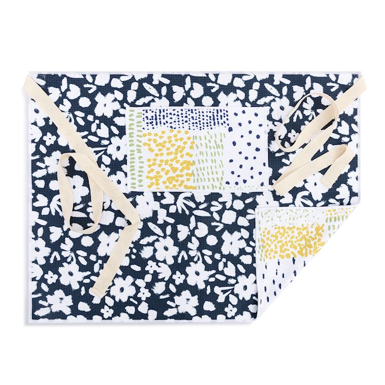 Navy Floral Absorbent Half Apron - 27x20in