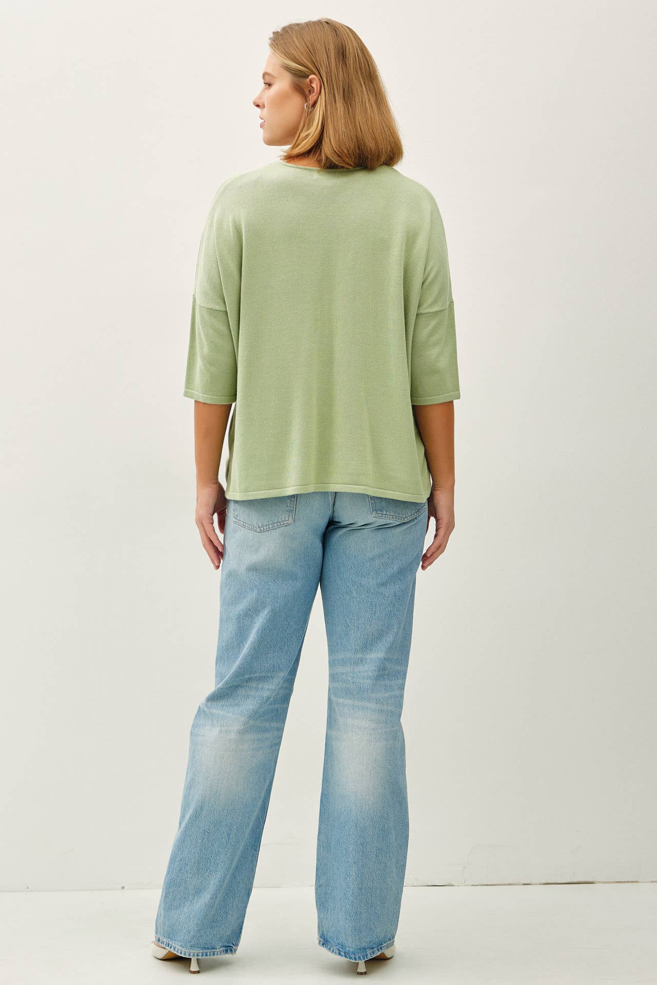 Drop Shoulder, Cotton Slub, V-Neck, Lightweight Knit Tee