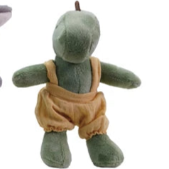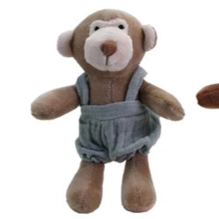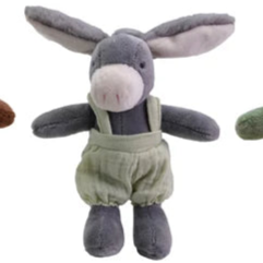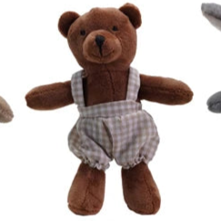 5"L x 6-1/2"H Plush Animal in Cotton Overalls, Multi Color, 4 Styles