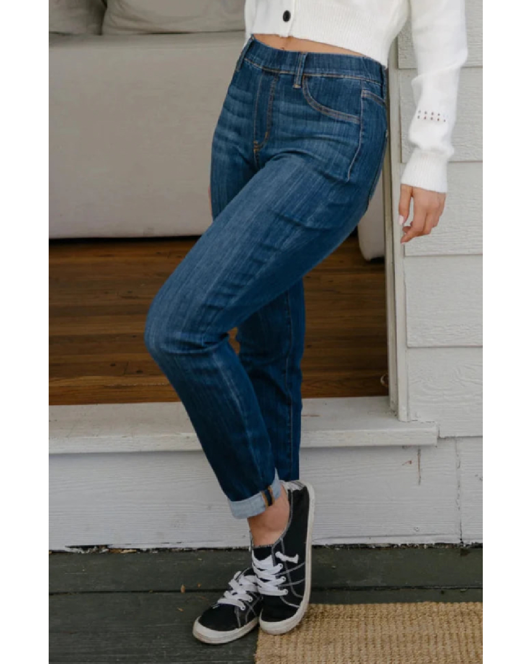 High-Waist Pull-on, Double Cuff Slim, Dark Wash