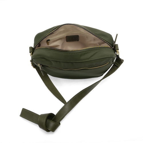 Super light and versatile, this cute crossbody can double as a sling when you want to travel hands free with the adjustable, removable shoulder strap. Fashioned in water resistant nylon and trimmed with our signature vegan leather featuring two zipper pockets to stash your phone or keep your keys in easy reach. The top zip closure accented with our logo zip pull keeps your belongings safe and secure wherever life takes you!