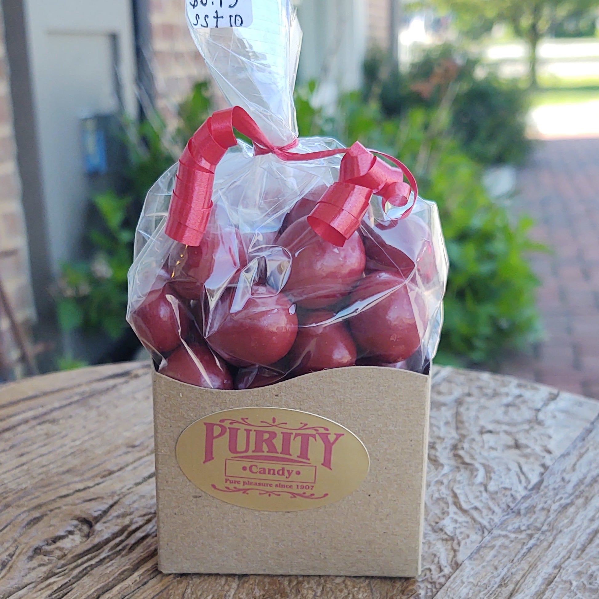 White chocolate (sugar, cocoa butter, whole milk powder, soy lecithin - an emulsifier, natural vanilla flavor) Milk chocolate (sugar, cocoa butter, chocolate liquor, whole milk powder, soy lecithin - an emulsifier, vanilla) Cherries (Cherries, sugar, sunflower oil), Tapioca dextrin, artificial colors (FD&C red 40 lake, FD&C yellow 6 lake, FD&C blue 2 lake), confectioners glaze, natural and artificial flavors.