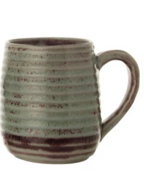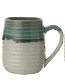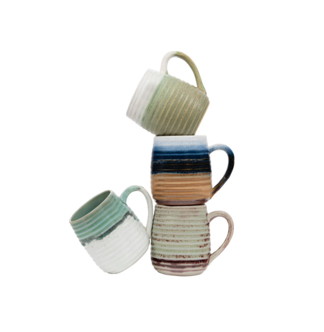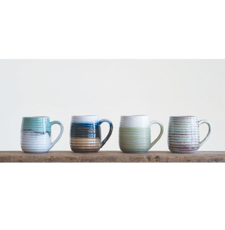4-1/4" Round x 4-1/2"H 16 oz. Stoneware Ribbed Mug, Reactive Glaze, 4 Colors Available (Each One Will Vary)