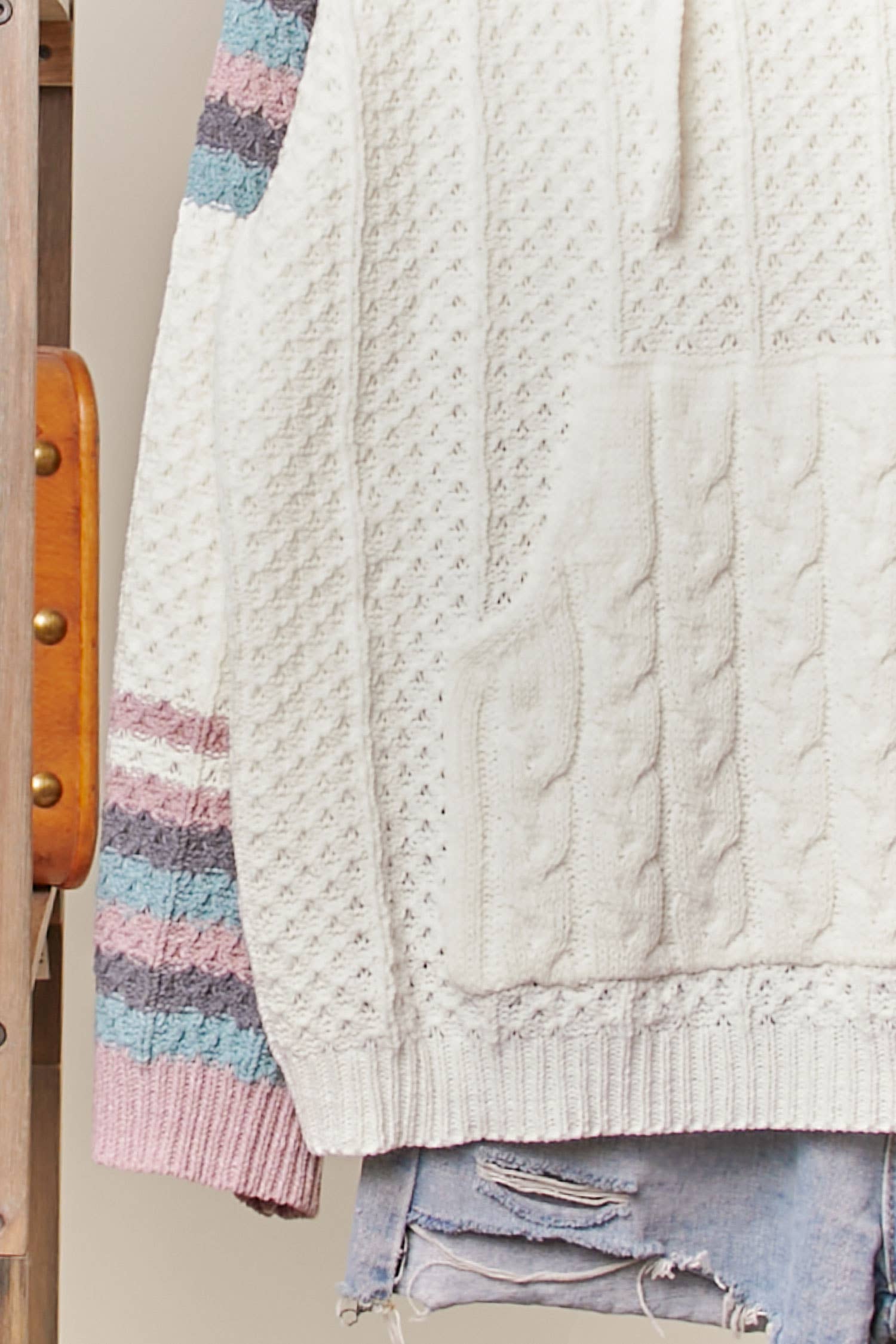 Striped Cable Front Pouch Pocket Hoodie Knit