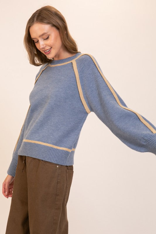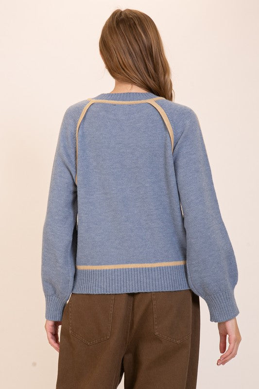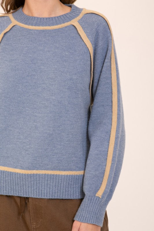 Elevate your everyday wardrobe with our Sweater, designed to offer both comfort and style. This sweater features a relaxed fit, crafted from a soft, cozy fabric that ensures all-day comfort. The elegant black trim along the neckline, shoulders, and hemline adds a touch of sophistication, making it a versatile piece for any occasion. The ribbed cuffs provide a snug fit, while the overall design allows for easy pairing with your favorite jeans or trousers. Whether you're dressing up for a casual day out or keeping it cozy at home, this sweater is your go-to choice for effortless elegance.