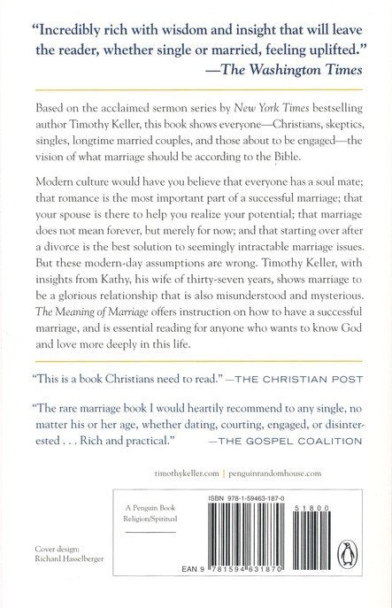 Based on the acclaimed sermon series by New York Times bestselling author Timothy Keller, this book shows everyone—Christians, skeptics, singles, longtime married couples, and those about to be engaged—the vision of what marriage should be according to the Bible.