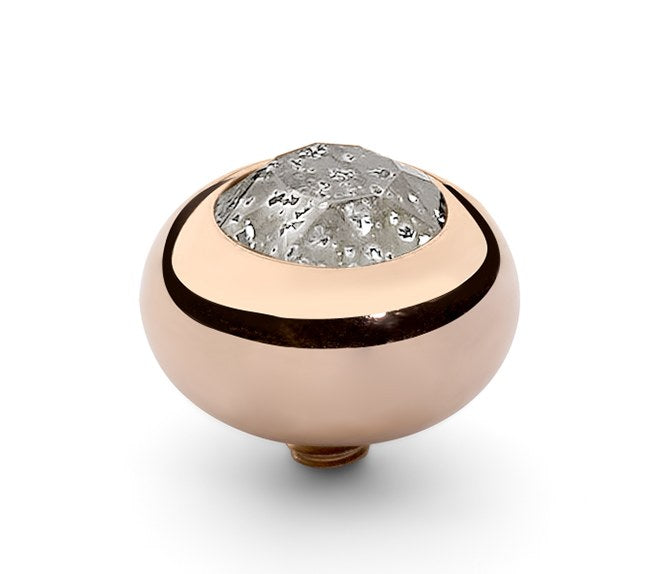 The Tondo 10mm top is quite a different shape from its 13mm & 16mm counterparts. This topper is very spherical, with the Swarovski crystal nestled down into the surrounding metal.