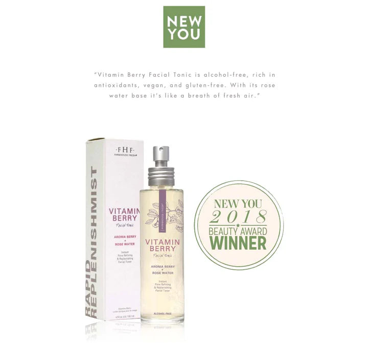 This alcohol-free berry & rose water tonic is most often described by users as "delightful and refreshing." It smooths skin, boosts moisture content, and provides vital nourishment from U.S.-grown organic aronia berries – a miracle fruit with one of the highest antioxidant contents ever recorded. A natural filter effect helps make pores appear as if they never existed at all.