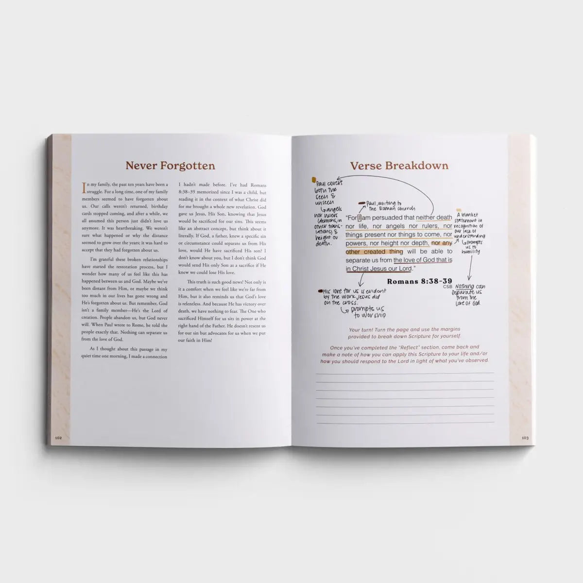 By providing practical Bible study tips and favorite journaling techniques, author Carrie Cristancho shares how to make meaningful connections with God’s Word. Your life will be transformed as you dive into Scripture and start seeing the goodness of God at every turn.