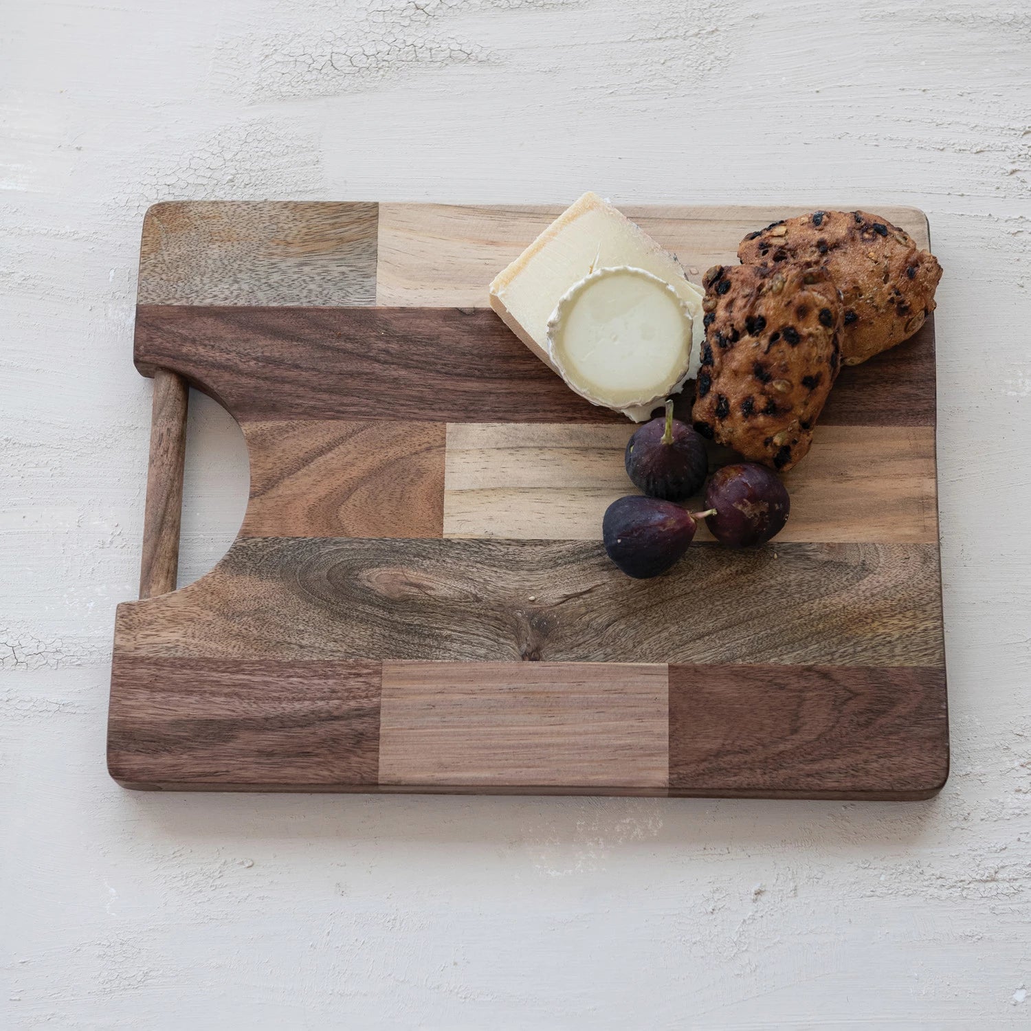 15-3/4"L x 11-3/4"W Acacia, Pine & Mango Wood End Grain Cheese/Serving Board w/ Handle, Natural