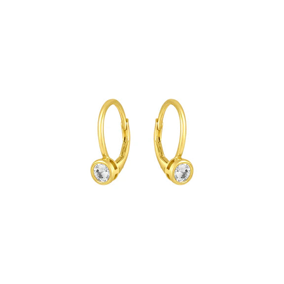 18k gold plated, 925 sterling silver, 5mm cubic zirconia, 14.6mm length. Hypoallergenic.