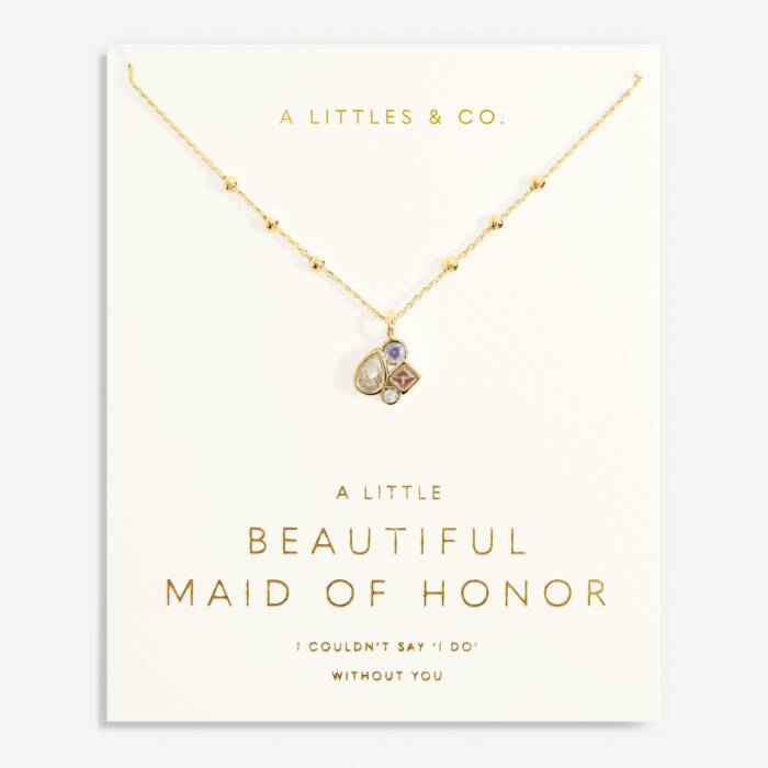 Our Bridal A Little Collection is the ultimate finishing touch for any bride or member of her tribe on the big day. Framed with a luxe linen card and stamped with a golden sentiment, our Bridal A Little 'Maid Of Honor' Necklace In Gold-Tone Plating features a classic beaded chain and a dazzling gemstone cluster pendant which is guaranteed to turn heads. .