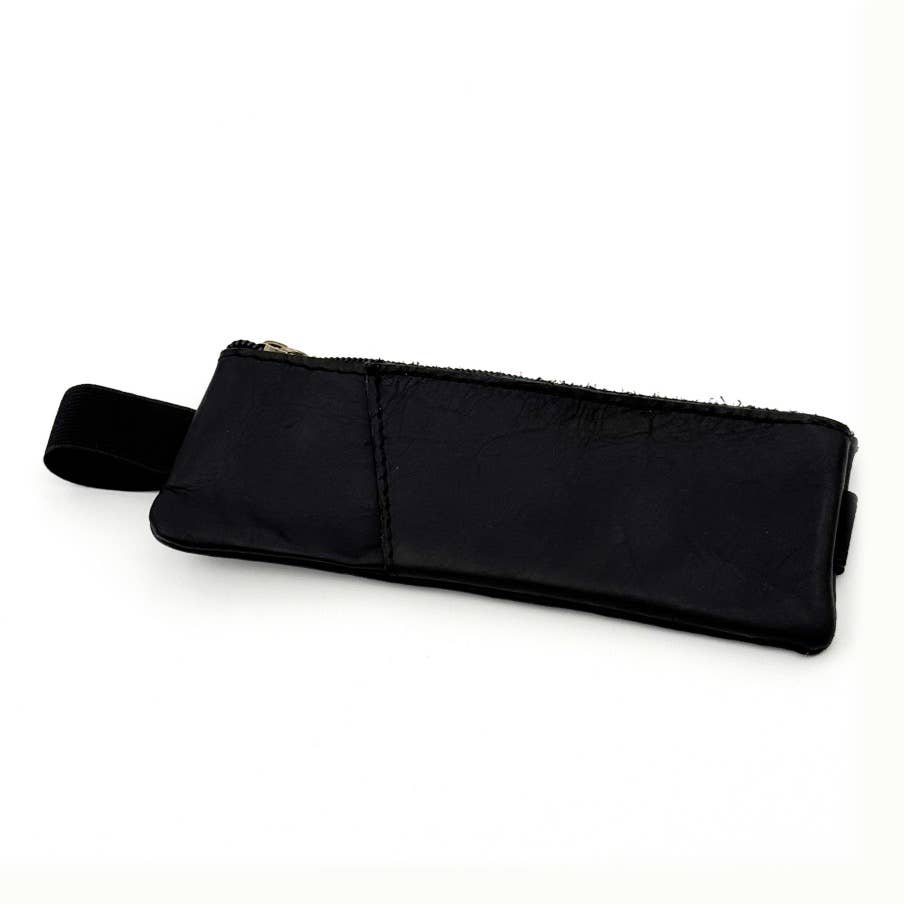 Keep your favorite pens, pencils, or highlighters close at hand with this vegetable-tanned leather pouch, designed to slip snugly over the cover of your notebook or journal. Made from rich, soft leather, it features a secure zippered compartment and a durable elastic strap to stretch easily around most standard books.